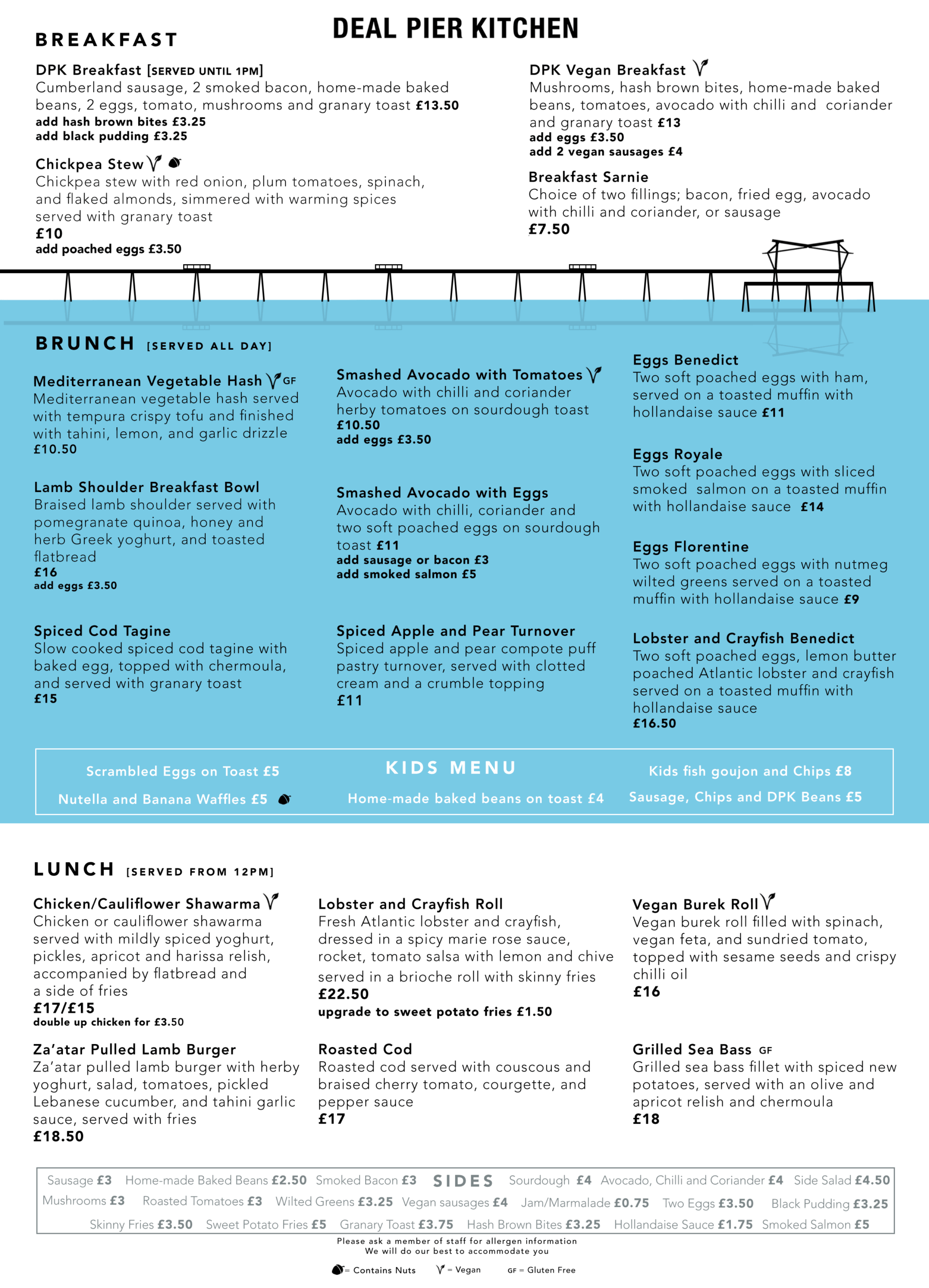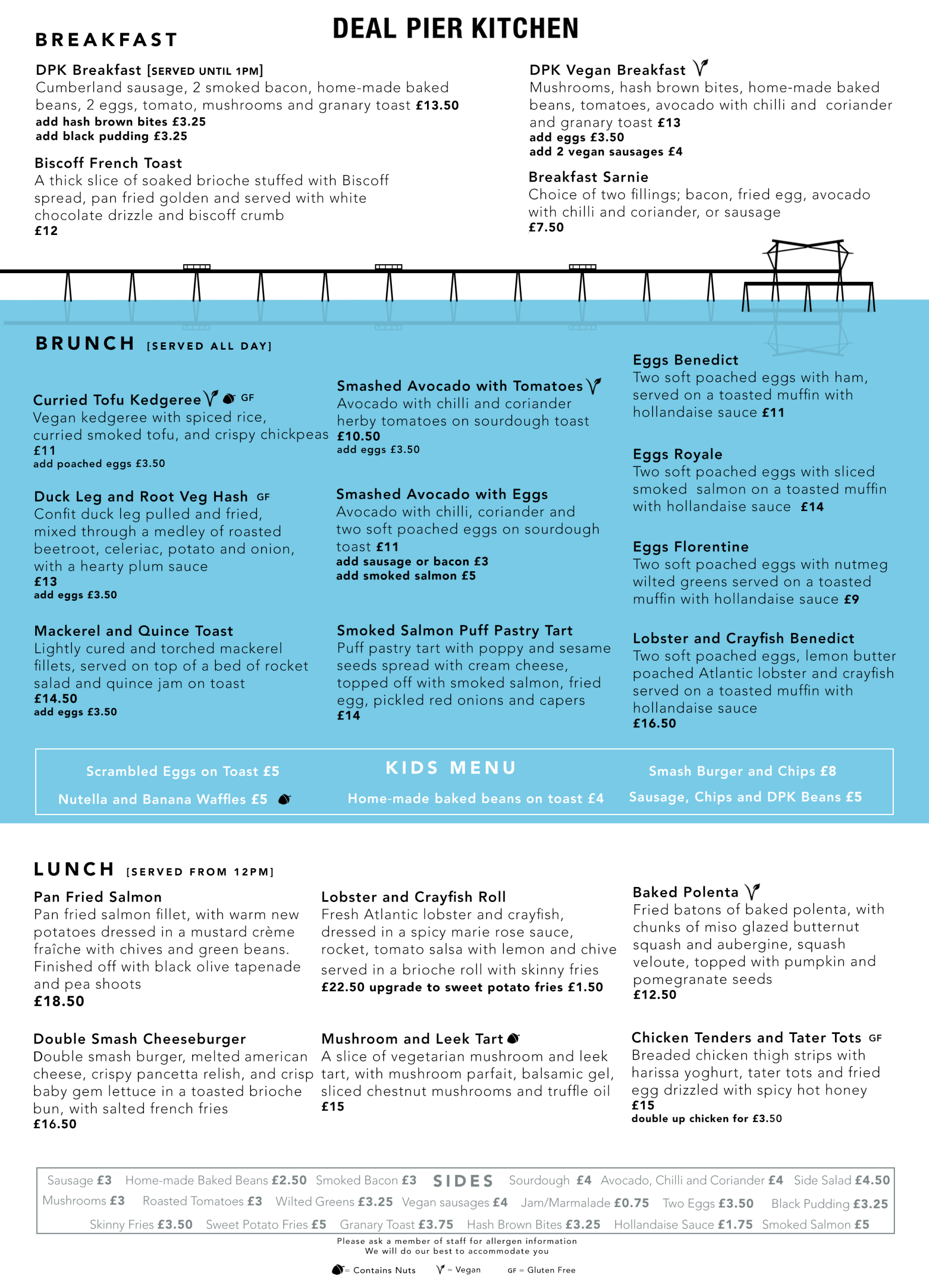 Since opening in January 2019, Deal Pier Kitchen has cultivated a reputation for great brunch and lunch as well as Steak & Lobster, showcasing local produce as well as a wide variety of Gluten Free, Vegan and Vegetarian dishes.