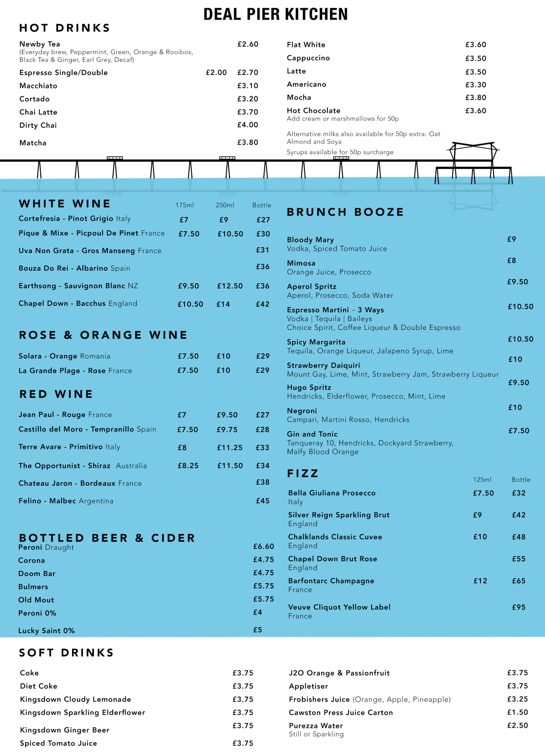 For any further information you’re unable to find on our website, please don’t hesitate to email us info@dealpierkitchen.com or call 01304 368 228